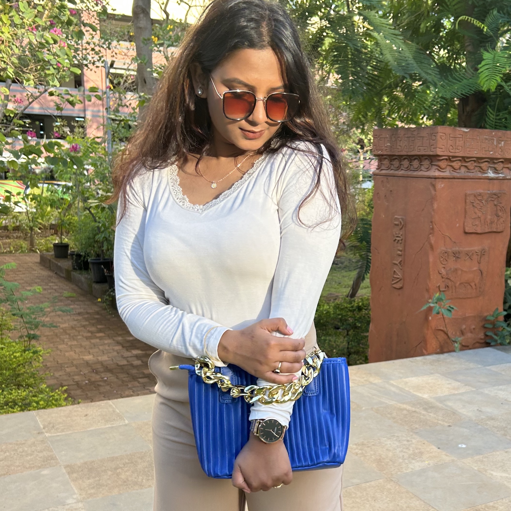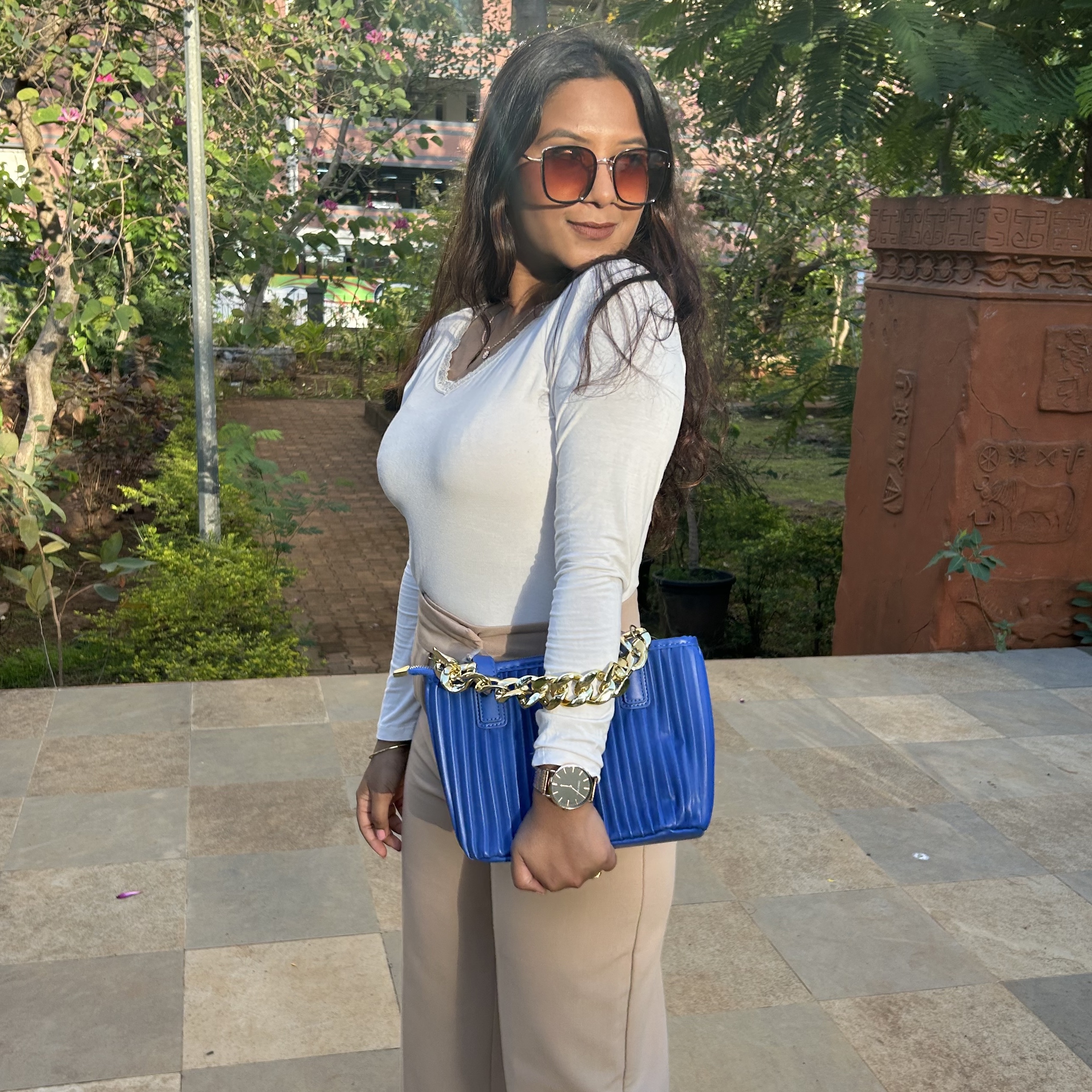 - Bold and modern with a statement-making design, the bag features a structured silhouette and oversized chain detailing that catches the eye.