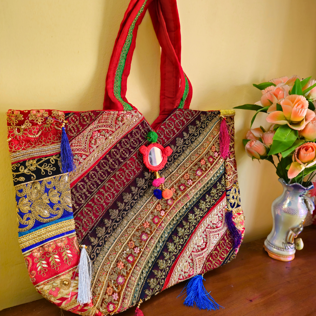 • Rich tapestry-style design with colorful patterns and decorative tassels