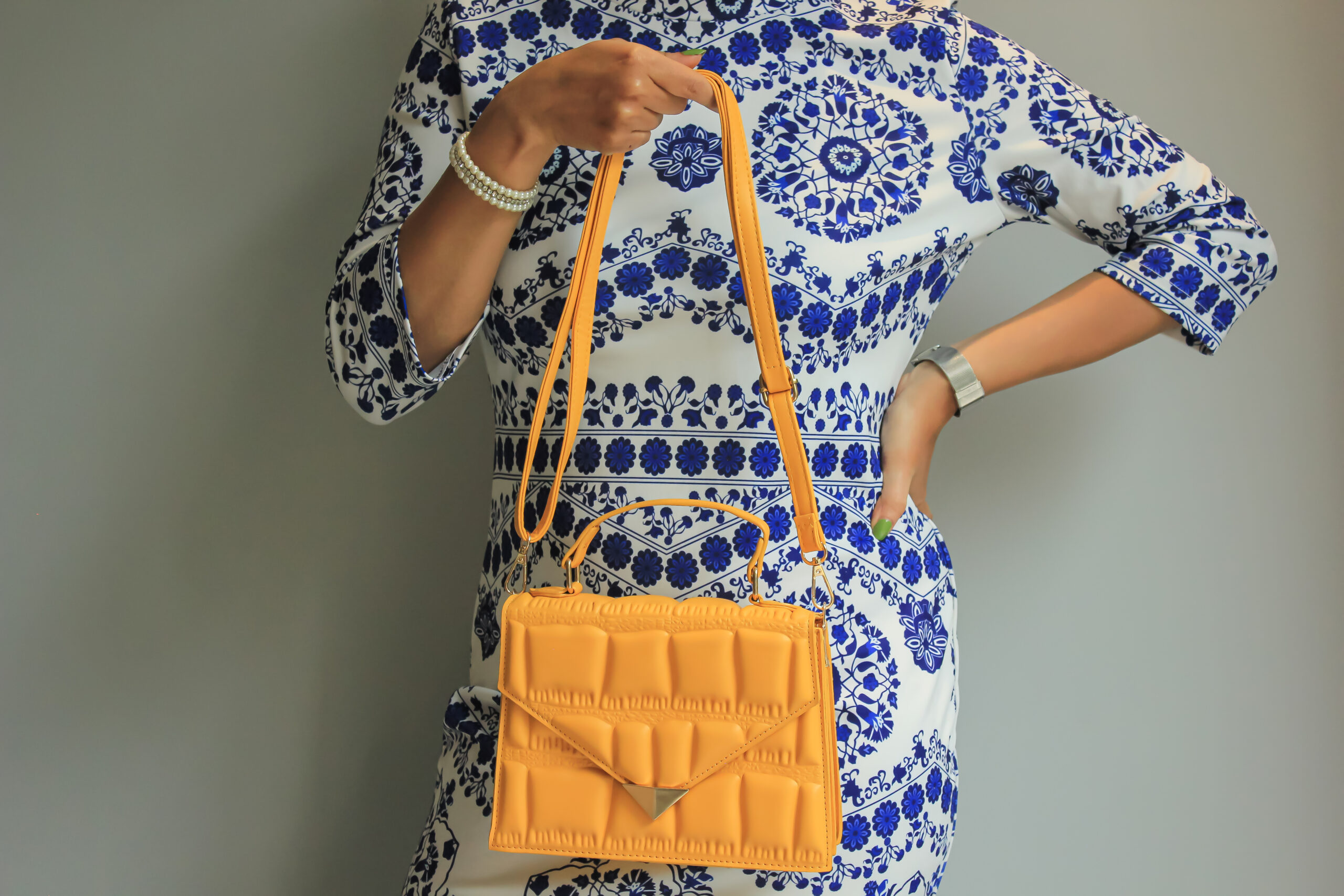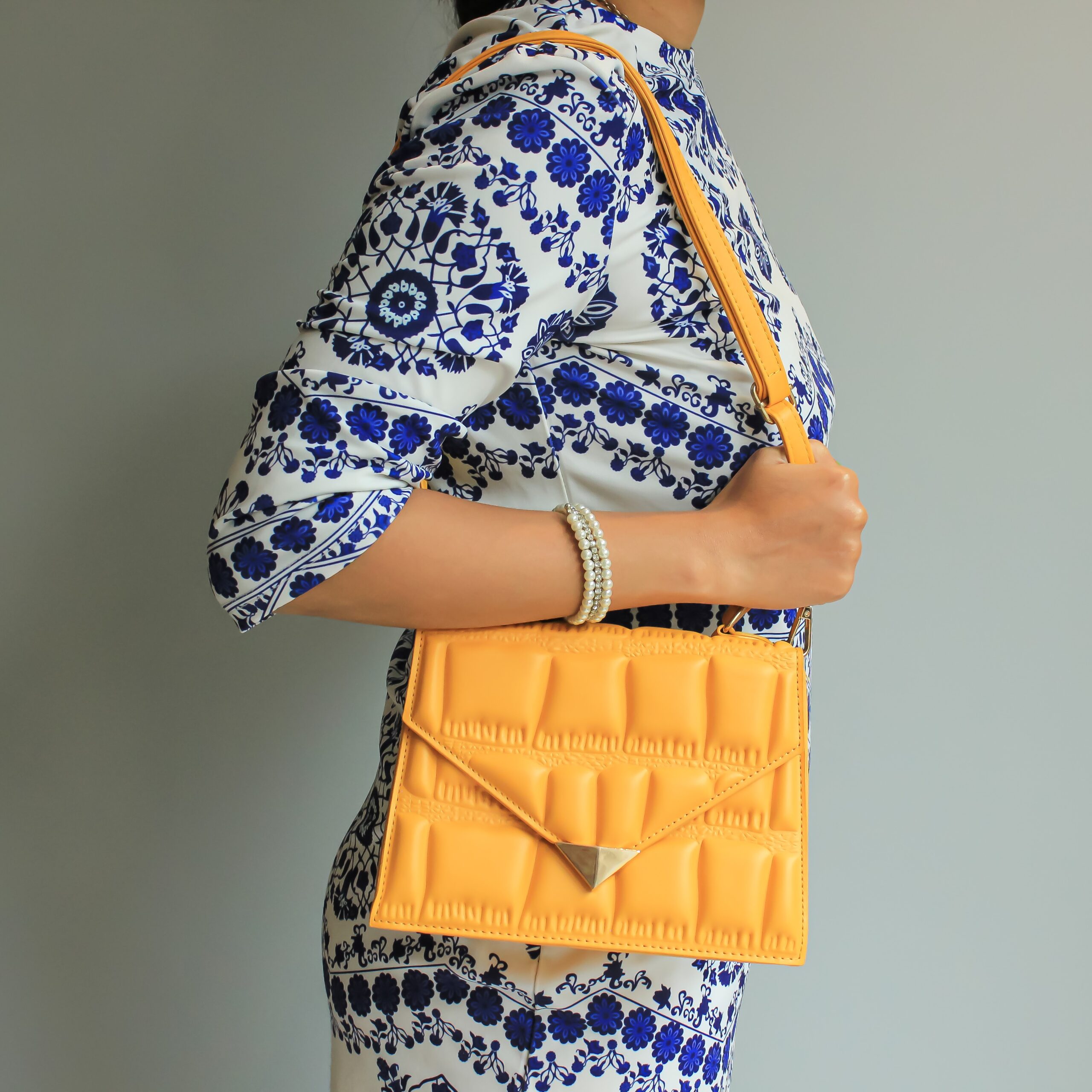 - Modern, structured design with clear geometric detailing gives the bag a defined look.