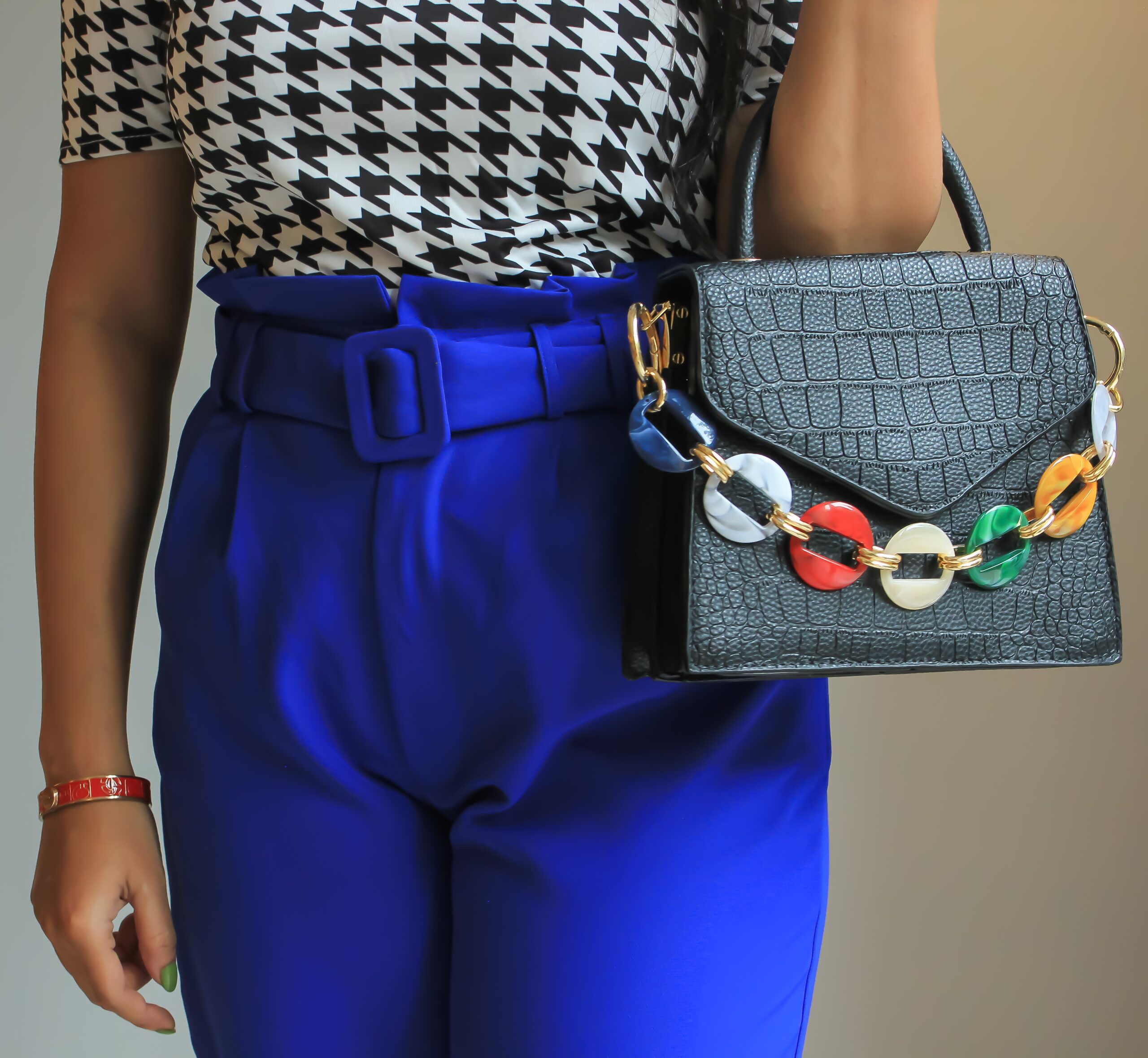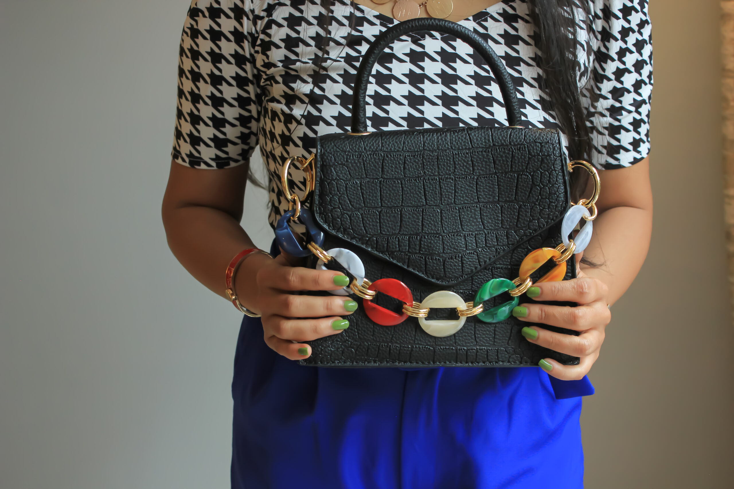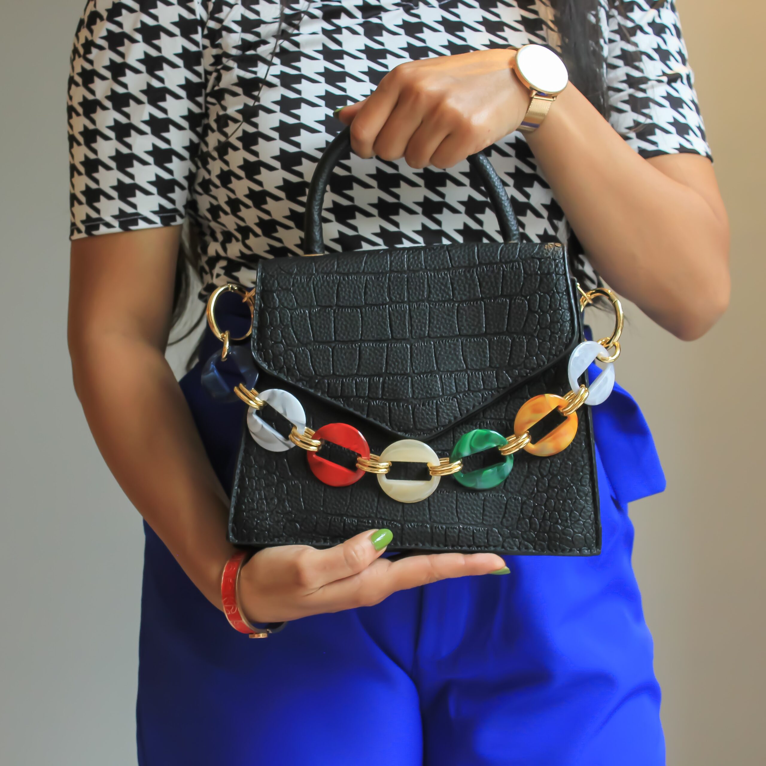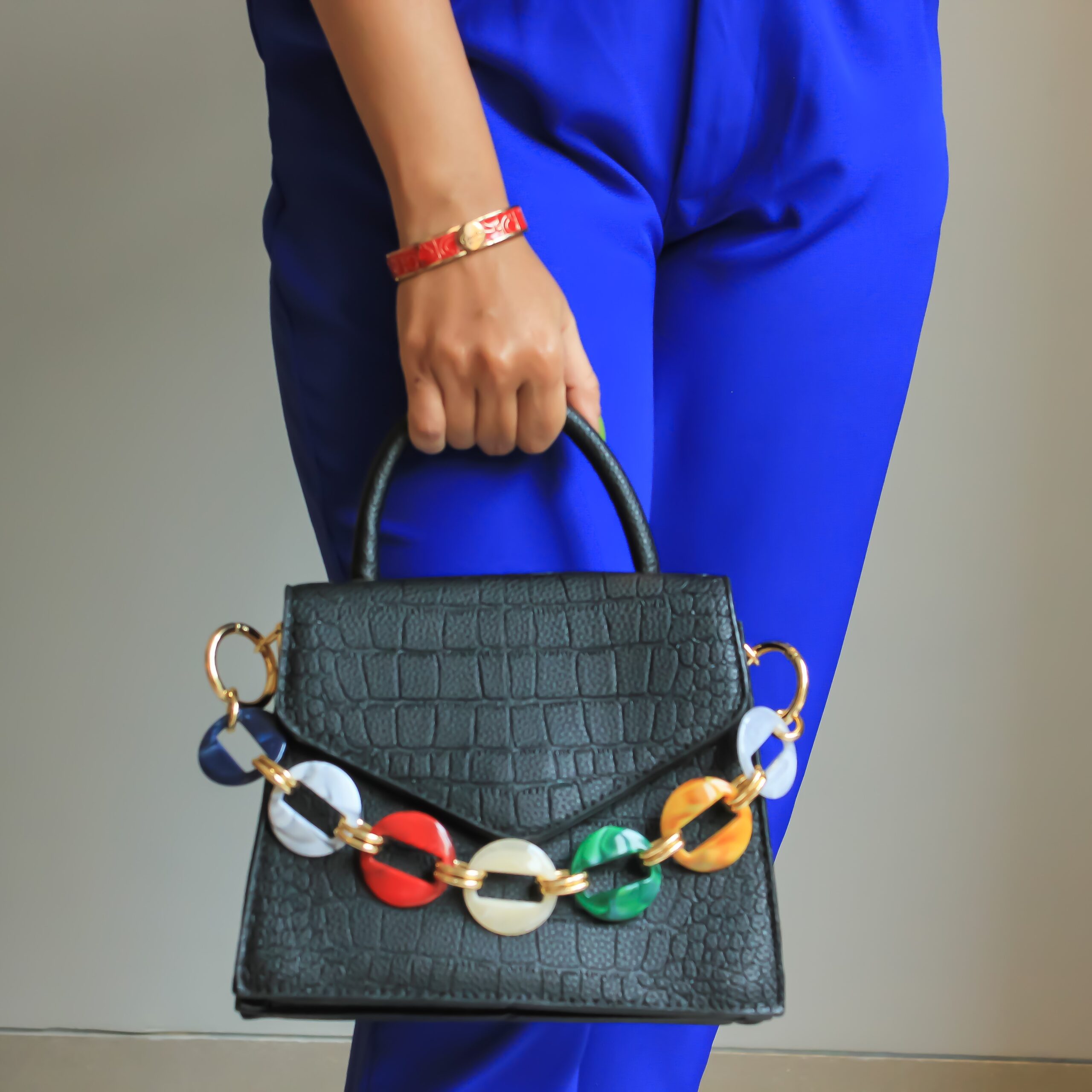 • Structured design with decorative accents gives the bag a bold and distinctive look.